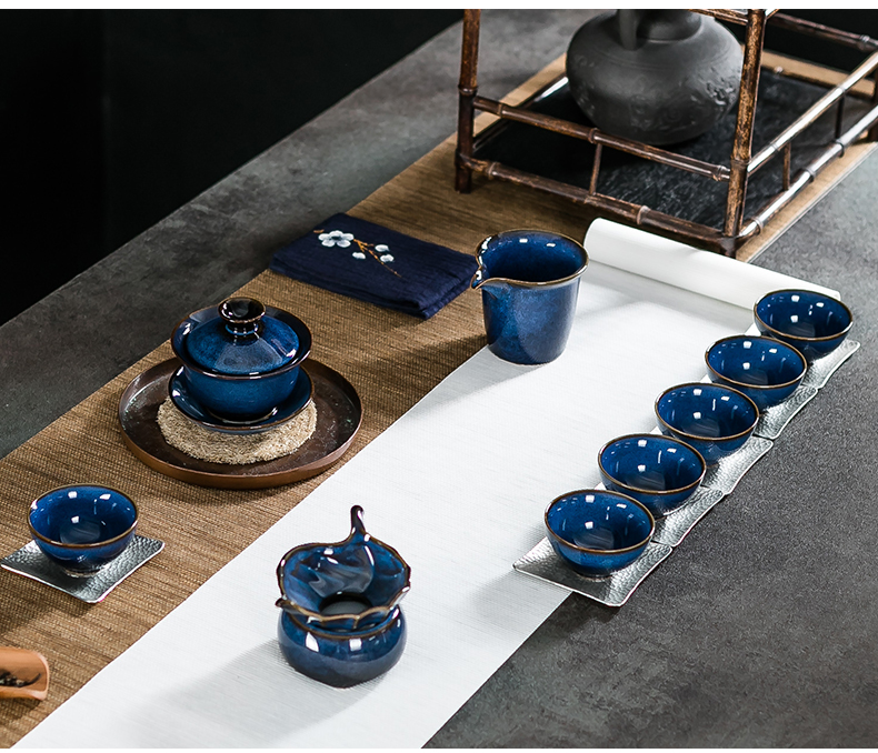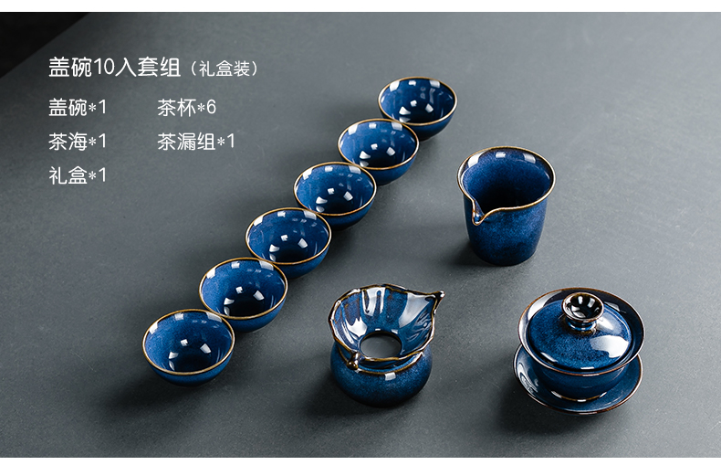 藍(lán)兔毫鈞窯蓋碗10入套組